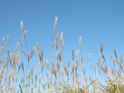 ラ¥晴天の秋空のすすきの穂が天に向かって伸びています。(岩湧山・河内長野市